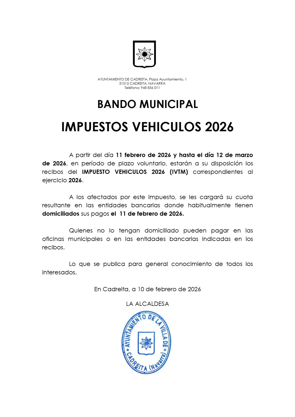 El Ayuntamiento de Cadreita ofrece servicio de transporte individualizado a todos los empadronados en el municipio. (NO SÓLO PARA JUBILADOS). Viajes e...