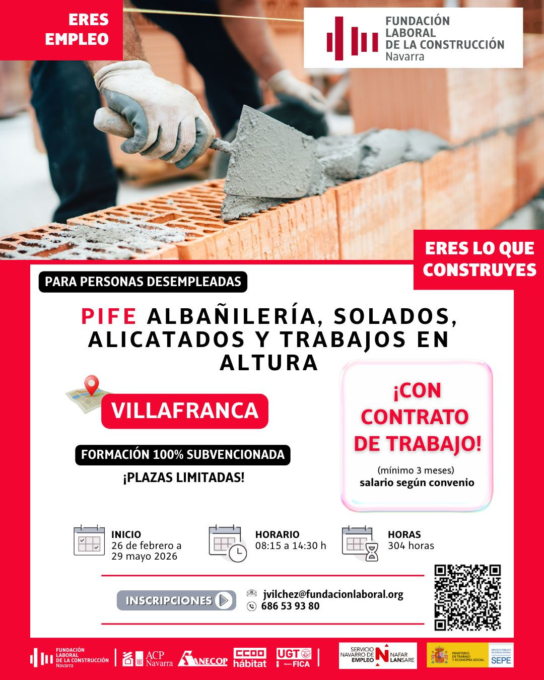 Formación 100% subvencionada por el Servicio Navarro de Empleo - Nafar Lansare en el sector de la construcc...