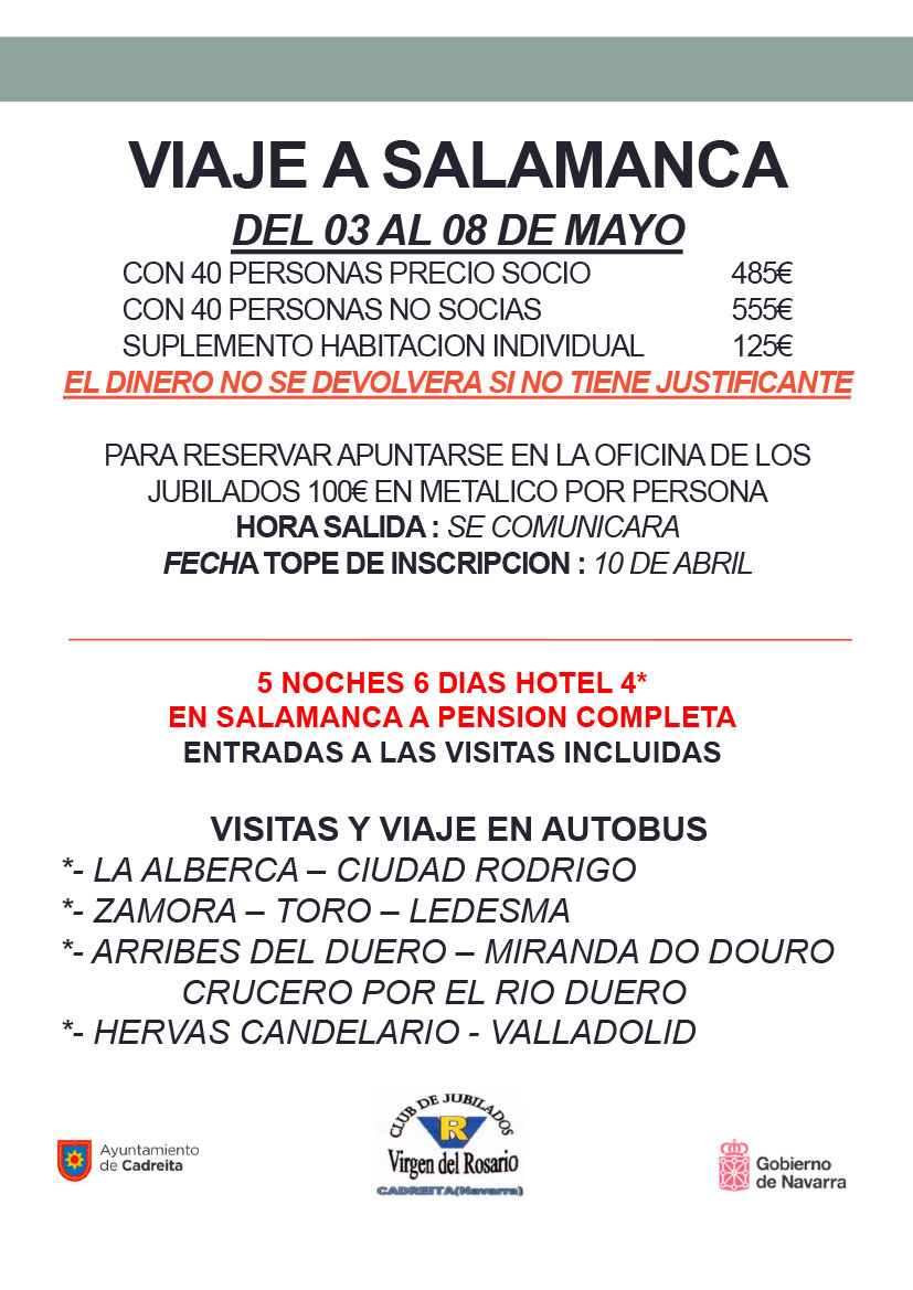Del 3 al 8 de mayo. Inscripciones: hasta el 10 de abril de 2026. Lugar: Oficina de Jubilados Más información en cartel adjunto.