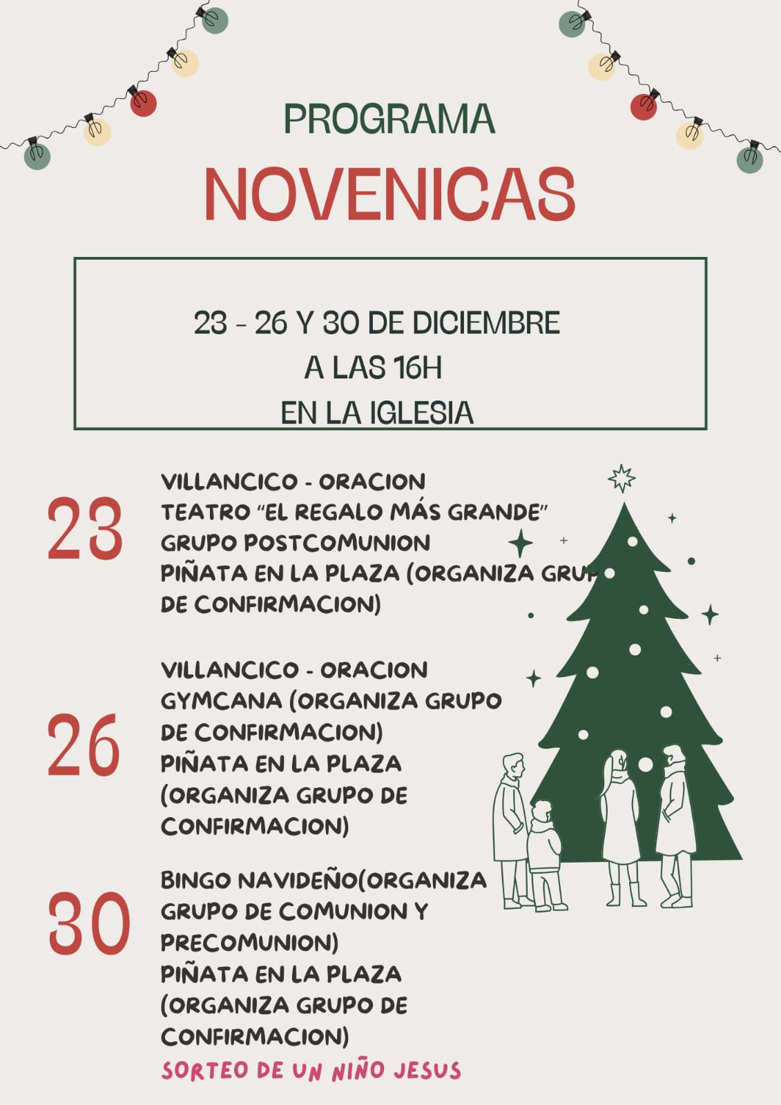 Bingo navideño (Organiza grupo de comunión y precomunión) Piñata en la plaza. (Organiza grupo de confirmación) Sorteo de un niño Jesús.